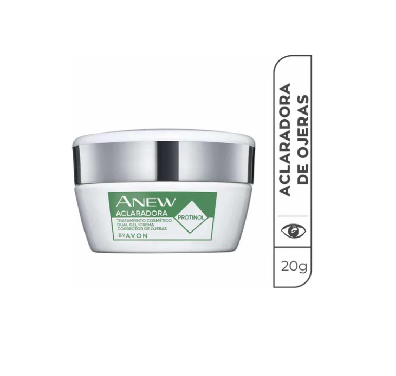 Anew Clinical Aclaradora Tratamiento Cosmético Dual Gel / Crema Corrector de Ojeras fue desarrollada con un activo antioxidante y la tecnología anew protinol que ayuda a aclarar las ojeras y mejorar la apariencia del área de los ojos.