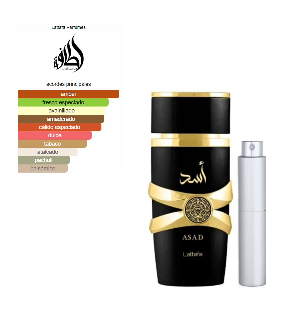 | Notas de Fondo: Vainilla, ámbar, Madera seca, benjuí y ládano. |