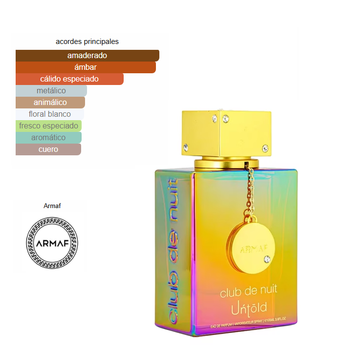 Club de Nuit Untold de Armaf es una fragancia de la familia olfativa para Hombres y Mujeres.