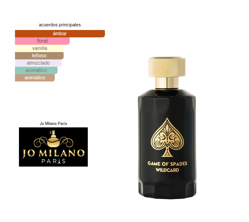 Game of Spades Wildcard de Jo Milano Paris es una fragancia floral amaderada con almizcle para mujer y hombre.