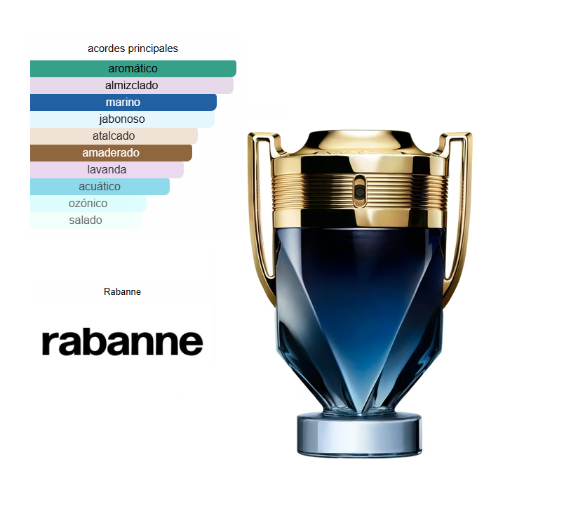 Invictus Parfum de Rabanne es una fragancia de la familia olfativa Aromática Acuática para Hombres.