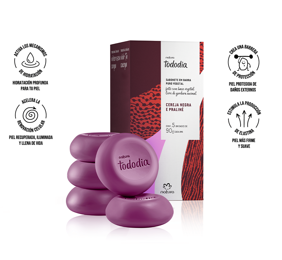 Tododia Jabones en barra puro vegetal cereza negra y almendras dulces Caja con 5 jabones de 90 g c/u